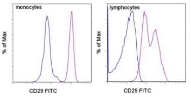 Description: The TS2/16 monoclonal antibody reacts with human CD29, also known as integrin beta 1, an approximately 130 kDa single-pass transmembrane glycoprotein. CD29 complexes with one of nine integrin alpha subunits to form the very late antigen (VLA) subfamily of adhesion molecules. Integrin heterodimers containing CD29 are involved in cell-cell and cell-matrix adhesion. CD29 is expressed broadly on lymphocytes and monocytes, with lower levels of expression on granulocytes. The TS2/16 antibody has been found to possess activating activity for beta 1 integrins.
