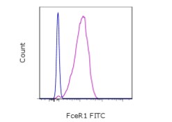 Description: The MAR-1 monoclonal antibody reacts with the Fc epsilon Receptor I alpha subunit, an IgE-binding subunit lacking signal-transducing ability. Fc epsilon RI alpha is expressed on mast and basophil cells and is up-regulated by the presence of IgE. Fc epsilon RI alpha forms a tetrameric complex with one beta and two gamma subunits. The beta and gamma subunits possess immunoreceptor tyrosine-based activation motifs (ITAM). The Fc epsilon RI complex plays an important role in triggering IgE-mediated allergic reactions.