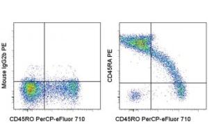 Description: The HI100 monoclonal antibody reacts with human CD45RA, a 220 kDa molecule expressed by subpopulations of CD4+ peripheral T lymphocytes, CD8+ peripheral T lymphocytes, and B cells. The CD45RA+ T cell populations are mainly naive/virgin allowing the use of HI100 mAb as a phenotypic marker to discriminate T cell subsets.
