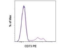 Description: This AD2 monoclonal antibody reacts with human CD73, a 5’-ectonucleotidase that converts 5’-adenosine monophosphate to adenosine. CD73 is expressed on the surface of endothelial cells, as well as B and T cells, including some CD4+Foxp3+ regulatory T cells. Adenosine production by these cells has been linked to the inhibition of CD4 T cell effector functions such as proliferation and cytokine secretion.