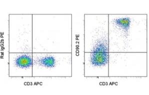 Description: The 30-H12 monoclonal antibody reacts with mouse CD90.2, also known as Thy-1.2, a GPI-linked membrane molecule. CD90.2 is expressed by mouse thymocytes and mature T cells as well as neurons in CD90.2-expressing mouse strains. These strains include BALB/c, CBA, C3H, C57BL/6, C58/, SJL and others. Cells from CD90.1-expressing strains including PL and AKR do not stain with 30-H12. CD90 is involved in regulation of adhesion and signal transduction by T cells.