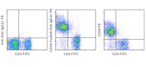 Description: The monoclonal antibody R2C-23A3 recognizes Rat IgG2c antibodies and can be used as a second step reagent in flow cytometry and microscopy. The monoclonal does not recognize other rat or mouse antibody isotypes.