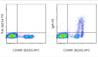 Description: The II/41 monoclonal antibody reacts with the mu heavy chain of mouse IgM. It does not react with other classes of mouse immunoglobulin including IgD, IgG or IgA. IgM is expressed intracellularly, during early stages of B lymphopoiesis, and then on the surface of more mature B cells in the bone marrow and peripheral B cells. Fluorochrome conjugated II/41 can be used as a detection secondary for mouse IgM.