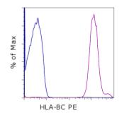 Description: This B1.23.2 monoclonal antibody recognizes the human Human Leukocyte Antigens (HLA) B and C. Along with HLA-A, these proteins correspond to MHC Class I in humans. HLA-B and HLA-C are expressed on nearly all cell types and heterodimerize with beta-2 microglobulin at the cell surface. These molecular complexes play a critical role in the presentation of endoplasmic reticulum-derived peptides to immune cells.