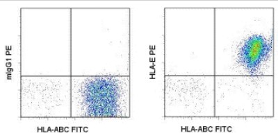 Description: The monoclonal antibody 3D12 (HLA-E) recognizes human HLA-E, a member of the Human Leukocyte Antigen family. HLA-E is a MHC Class IB member, which has a specialized role in NK cell recognition. Binding of a restricted set of peptides derived from other Class I leader sequences to the HLA-E and B2M (beta2 microglobulin) complex leads to interaction with NKG2A on NK cells. This binding protects the HLA-G-expressing cell from NK cell killing. HLA-E expression is ubiquitous.
