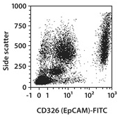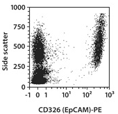 Clone HEA-125 recognizes CD326, also known as human epithelial antigen (HEA), epithelial cell adhesion molecule (EpCAM), or epithelial-specific antigen (ESA) and is involved in cell adhesion. The CD326 antigen is broadly expressed on the basolateral surface of carcinoma and epithelial cells in tissues or on circulating tumor cells, and cancer stem cells, but is not found on melanoma, neuroblastoma, sarcoma, lymphoma, leukemia cells, or normal fibroblasts.