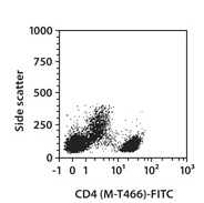 CD4 is a type I transmembrane glycoprotein involved in the recognition of MHC class II/peptide complexes by the TCR heterodimers. CD4 is highly expressed on T helper cells and at a lower level on monocytes and dendritic cells. The CD4 molecule is the receptor for the human immunodeficiency virus. The CD4 antibody recognizes the human CD4 antigen which is highly expressed on human T helper cells and thymocytes, and at lower levels on monocytes and dendritic cells. It is responsible for the recognition of the MHC class II antigen.