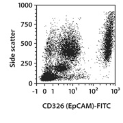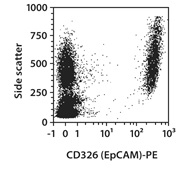 Clone HEA-125 recognizes the CD326 antigen, also known as human epithelial antigen (HEA), epithelial cell adhesion molecule (EpCAM), or epithelial-specific antigen (ESA), and is involved in cell adhesion. The CD326 antigen is broadly expressed on the basolateral surface of carcinoma and epithelial cells in tissues or on circulating tumor cells and cancer stem cells, but is not found on melanoma, neuroblastoma, sarcoma, lymphoma, leukemia cells, or normal fibroblasts.