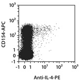 The Anti-IL‑4 antibody has been designed for intracellular staining of IL‑4–producing cells. Cells can be stimulated for IL‑4–production, e.g., by polyclonal stimulation with mitogens. For induction of IL‑4 production by antigen-specific T cells, cells are restimulated with respective antigen. IL‑4 can be accumulated in the cells by addition of secretion inhibitors like brefeldin A. After fixation and permeabilization of the cell sample, IL‑4–producing cells can be stained intracellularly with the Anti-IL‑4 antibody. Staining of surface markers allows simultaneous flow cytometric analysis of subsets and activation status of the IL‑4–producing cells. Magnetically enriched cells can be stained intracellularly for IL‑4 production directly on the MACS® Column. This procedure ensures higher sensitivity of detection and minimizes loss of cells during washing procedures for cytokine analysis of rare cells, e.g., CD4+ T cells in HIV patients, or other cell sources than peripheral blood mononuclear cells (PBMCs), e.g., bronchoalveolar lavages, or synovial fluids.