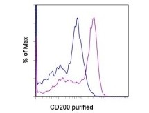 Description: The monoclonal antibody OX90.1 recognizes mouse CD200 also known as OX2. CD200 is a member of the Ig superfamily with 2 Ig domains, a transmembrane and cytoplasmic domain. CD200 is expressed on resting and activated B cells, a subset of resting and activated T cells, keratinocytes, peripheral and central nerve cells, follicular dendritic cells and ovarian cells. The interaction with CD200R results in macrophage activation (IL-6 production), inhibition of mast cell degranulation along with reduced TNF alpha and IL-13 secretion and overall attenuation of the activation status of lymphocytes.