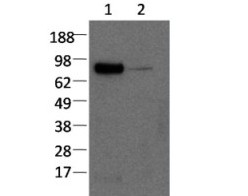 Description: The ATO-2F5 monoclonal antibody reacts with human Stat-1 (Signal Transducer and Activator of transcription-1) and has shown some cross-reactivity to mouse Stat-1. Stat-1 is a ubiquitously expressed transcription factor that resides in the cytoplasm until interferon receptor signaling leads to JAK-mediated phosphorylation. Upon phosphorylation, Stat-1 dimerizes and translocates to the nucleus where it forms the ISGF3 (Interferon-Stimulated Gene Factor 3) complex with Stat-2 and IRF-9. This complex is the main transcriptional activator for interferon signaling.
