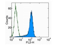 Description: The TY25 monoclonal antibody reacts with mouse B7-DC/PD-L2. B7-DC, a member of the B7 family, has a predicted molecular weight of ~25 kDa and belongs to the Ig superfamily. The mouse B7-DC has a short cytoplasmic tail (4aa). B7-DC is primarily expressed by sub-populations of dendritic cells, monocytes and macrophages. Although B7-DC has structural and sequence similarities to the B7 family, it does not bind CD28/CTLA-4, but binds PD-1. The interactions between PD-1 and B7-DC/PD-L2 have been reported to be involved in costimulation or suppression of T cell proliferation depending on state of cellular activation. TY25 is a useful tool to study the exact function of B7-DC/PD-L2 in APC/T cell interaction and to characterize the expression pattern of this molecule in mouse.