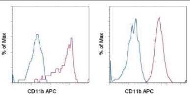 Description: The ICRF44 monoclonal antibody reacts with human CD11b, a 165 kDa adhesion molecule. CD11b associated with integrin β2 (CD18) is expressed on the surface of monocytes, granulocytes, activated lymphocytes and a subset of NK cells. CD11b is a receptor for intercellular adhesion molecule family members CD54, CD102 and CD50 as well as for iC3b. These adhesions are crucial in cell-cell and cell-matrix interactions.