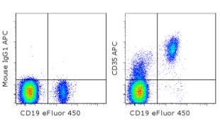 Description: This E11 monoclonal antibody reacts with human and non-human primate CD35, which is also known as complement receptor 1 (CR1). CD35 is expressed on B cells, T cell subsets, follicular dendritic cells, macrophages, neutrophils, eosinophils, and erythrocytes. This cell surface protein is also present on non-immune cells such as glomerular podocytes and Langerhans cells. CD35 binds the complement components C3b and C4b, which are derived from cleavage of C3 and C4, respectively, in the classical and alternative complement pathways. In humans, CD35 has been implicated in a variety of roles, including complement activation, transporting C3 complexes on erythrocytes, phagocytosis of complement-bound neutrophils and macrophages, B cell proliferation, and opsonization. Reports also indicate that Plasmodium falciparum, the pathogen that causes malaria, invades host erythrocytes by binding CD35. Decreased expression of CD35 on erythrocytes has been associated with systemic lupus erythematosus (SLE), type I diabetes, and rheumatoid arthritis.