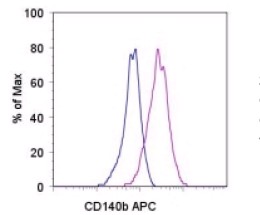 Description: The APB5 monoclonal antibody reacts with the mouse CD140b molecule, the β chain of the platelet derived growth factor receptor (PDGF receptor). PDGFRb is a receptor tyrosine kinase that forms dimers on the surface upon ligand binding and phosphorylates substrates. Dimers of PDGFR consist of either homodimers of α/α, β/β, or heterodimers of α/β and serve as a substrate for its kinase activity. CD140b is expressed by embryonic tissues and mesenchymal-derived cells of the adult mouse tissues. The PDGFR β chain is reported to play a significant role in formation of fibrous atherosclerotic lesions.