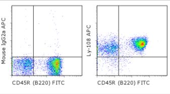 Description: The eBio13G3-19D monoclonal antibody reacts with mouse Ly108, the mouse homologue of human SLAMF6 (signaling lymphocyte activation molecule family member 6). Mouse Ly108 is also known as NTB-A (NK cell, T cell, B cell antigen), and is expressed on NK, T cells, and B cells. Engagement of the Ly108 receptor enhances NK cell activity and expression of IFN-gamma, and contributes to the inability of NK cells to kill Epstein Barr virus-infected B cells in X-linked lymphoproliferative disease. CD4+ T cells from Ly108 knock-out mice exhibit diminished ability to produce IL-4 and defective neutrophil functions.