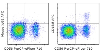 Description: This UP-R1 monoclonal antibody recognizes human CD158f, also known as KIR2DL5. CD158f is an inhibitory receptor and a member of the KIR (Killer cell Ig-like receptors) family of receptors, which recognizes subsets of HLA alleles. Expression is found mainly on a subset of NK cells with minimal expression also present on a minor subset of T lymphocytes in some individuals. This new member of the family is highly polymorphic and expression is not found on many human donors. Activation of the receptor and tyrosine phosphoryaltion recruits SHP-2 and SHP-1 to the ITIM cytoplasmic domain.