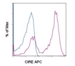 Description: The LWC06 antibody was generated by immunization with the recombinant extracellular region of mouse CIRE/DC-SIGN (CD209). CIRE/DC-SIGN was identified by its expression on CD8α- dendritic cells and plasmacytoid predendritic cells, and is the closest homologue of human DC-SIGN. Human DC-SIGN was originally identified in human placenta for its ability to bind the HIV envelope protein gp120 in a CD4-independent manner. CIRE/DC-SIGN is a 33 kDa type II transmembrane C-type lectin protein. It contains a C-terminal, extracellular, Carbohydrate Recognition Domain (CRD) that is predicted to bind mannose and other carbohydrates in a Ca2+ dependent manner. It has been postulated that CIRE/DC-SIGN may play a role in T-dendritic cell interactions through binding with members of the ICAM family. CIRE/DC-SIGN is differentially expressed by sub-populations of dendritic cells and preliminary data suggest that its expression varies depending on the activation state of the host. CIRE/DC-SIGN is down-regulated in spleen-derived dendritic cell cultures supplemented with GM-CSF. While human DC-SIGN is predominantly expressed in dendritic cells, CIRE/DC-SIGN mRNA has also been detected in B cells. The LWC06 monoclonal antibody does not cross-react with the closely related SIGNR1, SIGNR2, SIGNR3 or SIGNR4.
