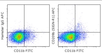 Description: The eBio22D1 monoclonal antibody reacts with mouse SIGNR1 (CD209b). SIGNR1 is a type II transmembrane C-type lectin that was identified in a search for mouse homologues of human DC-SIGN. It is expressed at high levels in splenic marginal zone macrophages and lymph node medullary macrophages, where it functions to uptake dextran polysaccharides, including the capsular polysaccharide of Streptococcus pneumoniae. It has also been demonstrated that SIGNR1 physically associates with TLR4/MD2, and it has been suggested that this association plays a role in recognition of LPS. Furthermore, recently it has been shown that SIGNR1 deficient mice have a defect in catabolism of the complement component C3, and that SIGNR1 binds directly to the complement C1 subcomponent, C1q to assemble a non-conventional C3 convertase. The eBio22D1 monoclonal antibody does not cross-react with the closely related SIGNR1, SIGNR2, SIGNR3 or SIGNR4.