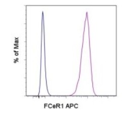 Description: The MAR-1 monoclonal antibody reacts with the Fc epsilon Receptor I alpha subunit, an IgE-binding subunit lacking signal-transducing ability. Fc epsilon RI alpha; is expressed on mast and basophil cells and is up-regulated by the presence of IgE. Fc epsilon RI alpha forms a tetrameric complex with one beta and two gamma subunits. The beta and gamma subunits possess immunoreceptor tyrosine-based activation motifs (ITAM). The Fc epsilon RI complex plays an important role in triggering IgE-mediated allergic reactions.