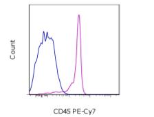 Description: The HI30 monoclonal antibody reacts with all isoforms of human CD45, also known as Leukocyte Common Antigen (LCA). CD45 is expressed by all hematopoietic cells excluding circulating erythrocytes and platelets. The cytoplasmic portion of CD45 has tyrosine phosphatase enzymatic activity and plays an important role in activation of lymphocytes.