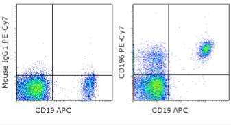 Description: This R6H1 monoclonal antibody reacts with CD196 (also known as CCR6), a seven transmembrane G protein-coupled receptor expressed on T, B, dendritic, natural killer, and Langerhans cells. This CC chemokine receptor uniquely binds MIP-3a/CCL20, a chemoattractant for dendritic cells, effector/memory T cells, and B cells. CD196 is also involved in host defense and inflammation at epithelial sites. Furthermore, this receptor has been implicated in Th17 differentiation and CD4+FoxP3+ regulatory T cell development.