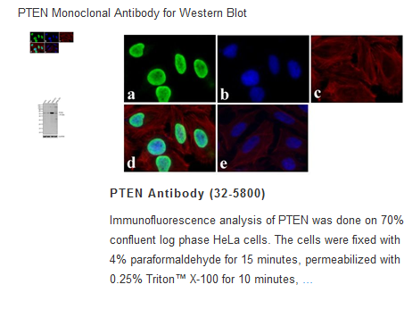 This gene was identified as a tumor suppressor that is mutated in a large number of cancers at high frequency. The protein encoded this gene is a phosphatidylinositol-3, 4, 5-trisphosphate 3-phosphatase. It contains a tensin like domain as well as a catalytic domain similar to that of the dual specificity protein tyrosine phosphatases. Unlike most of the protein tyrosine phosphatases, this protein preferentially dephosphorylates phosphoinositide substrates. It negatively regulates intracellular levels of phosphatidylinositol-3, 4, 5-trisphosphate in cells and functions as a tumor suppressor by negatively regulating AKT/PKB signaling pathway.
