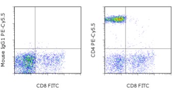 Description: The SK3 monoclonal antibody reacts with human CD4, a 59-kDa cell surface receptor expressed by a majority of thymocytes, a subpopulation of mature T helper cells, and at low levels on monocytes. CD4 is a receptor for the human immunodeficiency virus (HIV). SK3 blocks HIV binding and mixed lymphocyte reaction. The SK3 and RPA-T4 monoclonal antibodies do not cross-block binding, suggesting recognition of distinct epitopes.