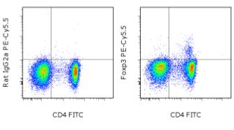 The PCH101 antibody reacts with the amino terminus of human foxp3 protein also known as FORKHEAD BOX P3, SCURFIN, and JM2; cross reactivity of this antibody to other proteins has not been determined. Foxp3, a 49-55 kDa protein, is a member of the forkhead/winged-helix family of transcriptional regulators, and was identified as the gene defective in ‘scurfy’ (sf) mice. Constitutive high expression of Foxp3 mRNA has been shown in CD4+CD25+ regulatory T cells (Treg cells), and ectopic expression of foxp3 in CD4+CD25- cells imparts a Treg phenotype in these cells.
