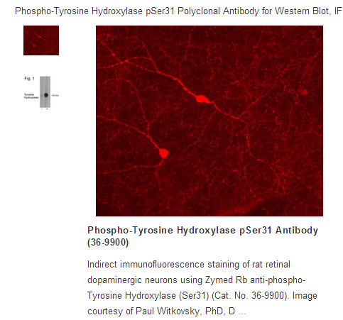 Tyrosine hydroxylase (TH) is the rate-limiting enzyme in the synthesis of the catecholamine neurotransmitters (dopamine, epinephrine, and norepinephrine). It is responsible for the conversion of L-tyrosine to L-dopa in the catecholamine synthesis pathway