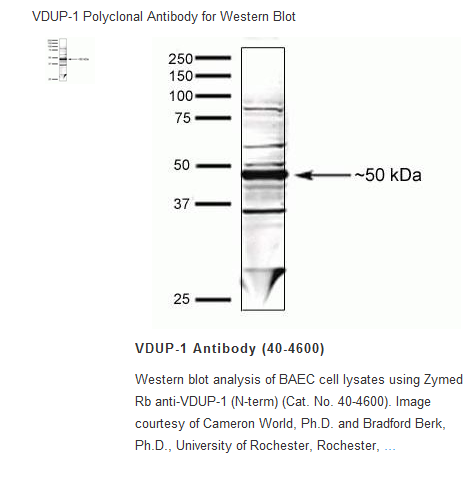 Thioredoxin-interacting protein belongs to the arrestin family. It acts as an oxidative stress mediator by inhibiting thioredoxin activity or by inhibiting thioredoxin activity or by limiting its bioavailability. It functions as a transcriptional repressor, possibly by acting as a bridge molecule between transcription factors and corepressor complexes, and over-expression will induce G0/G1 cell cycle arrest. It is required for the maturation of natural killer cells. Recently reported, TXNIP deficiency led to the impairment of NLRP3 inflammasome activation to innate immune responses and reduced secretion of interleukin IL-1ß.