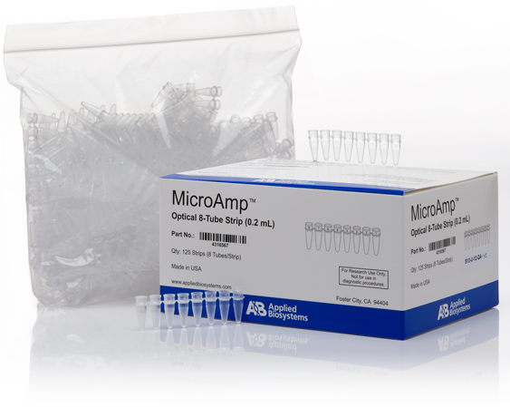 Applied Biosystems® MicroAmp® 光学8联排管理想的设计,可紧密放置于我们的 Applied Biosystems® 实时荧光定量PCR系统或PCR仪中,最大程度提高热传导性和精确控制循环温度。需使用适合您的仪器的托架或支座板。