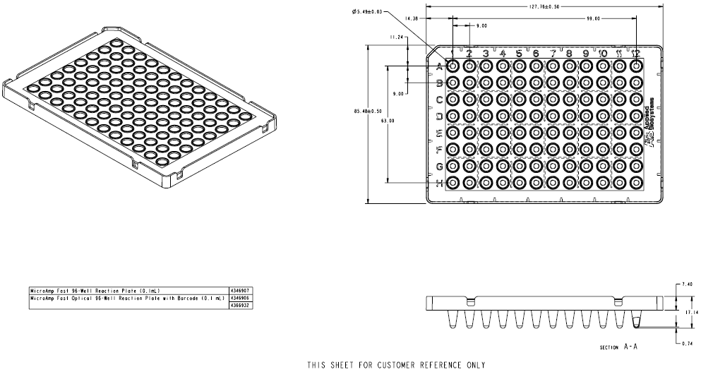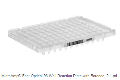 The Applied Biosystems® MicroAmp® Fast Optical 96-Well Reaction Plate with Barcode is an integral component of the Applied Biosystems® Fast PCR System, which reduces PCR reaction time from 2 hours to as little as 25 minutes.