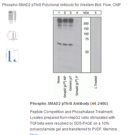 The antiserum was produced against a chemically synthesized phosphopeptide derived from a region of human Smad2 that contains threonine 8. The sequence is conserved in mouse and rat.