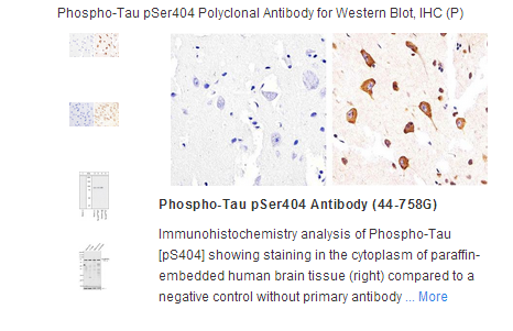 The antiserum was produced against a chemically synthesized phosphopeptide derived from a region of human Tau that contains serine 404. The sequence is conserved in mouse and rat.