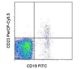 Description: The EBVCS2 monoclonal antibody reacts with human CD23, a 45 kDa type II transmembrane glycoprotein. CD23 is expressed on mature B cells, mantle zone B cells, follicular dendritic cells and at low levels on T, NK, langerhans cells and platelets. Expression of CD23 is upregulated upon B cell activation, and soluble forms of the antigen have been reported to be biologically active. CD23 is a low affinity receptor for IgE and is thought to play a role in the regulation of IgE response and B cell activation. CD21 and the alpha subunit of CD11b and CD11c bind to CD23.