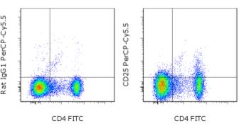 Description: The PC61.5 antibody reacts with mouse CD25, the 55 kDa interleukin-2 receptor alpha chain (IL-2R alpha). CD25 is expressed by early progenitors of the T and B lineage as well as by activated mature T and B lymphocytes. By itself, CD25 binds IL-2 only with low affinity. However, CD25 associates with CD122 (IL-2 receptor beta chain) and CD132 (common gamma chain) to form the high affinity IL-2 receptor. Binding of IL-2 to both the high and low affinity classes of IL-2 receptor is inhibited by the PC61.5 antibody. CD25 plays a role in lymphocyte differentiation and activation/proliferation.