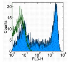 Description: The HI100 monoclonal antibody reacts with human CD45RA, a 220 kDa molecule expressed by subpopulations of CD4+ peripheral T lymphocytes, CD8+ peripheral T lymphocytes, and B cells. The CD45RA+ T cell populations are mainly naive/virgin allowing the use of HI100 mAb as a phenotypic marker to discriminate T cell subsets.