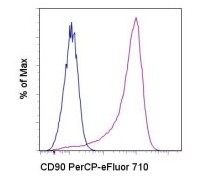Description: The eBio5E10 monoclonal antibody reacts with human CD90, also known as Thy-1 (thymus cell antigen-1). CD90 is a 25-35 kDa receptor expressed on thymocytes, CD34+ prothymocytes, hematopoietic stem cells, neurons, a small subset of human fetal liver cells, cord blood cells, and bone marrow cells. CD90 is expressed on a subset of immature, CD34+ cells and a distinct subset of mature CD34- cells that are CD3+CD4+. The CD90+CD34+ population is enriched for cells capable of long-term culture. CD90 is involved in regulation of adhesion and signal transduction by T cells.