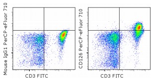 Description:This monoclonal antibody 47.7G7.1F2 reacts with human CD126, also known as IL-6 receptor alpha. It associates with the gp130 chain to form the high-affinity receptor for IL-6. Although gp130 is ubiquitously expressed, CD126 is only found on mature T cells, activated B cells, macrophages, hepatocytes, and myeloma cells. Upon binding to IL-6, two heterotrimeric complexes of receptor and ligand associate into a hexamer and are then internalized, initializing Jak/STAT signaling pathways. IL-6 induces the proliferation and survival of T cells, Th2 differentiation, and acute-phase protein production in the liver. A soluble form of CD126 lacking the transmembrane domain is also present and can be generated by cleavage at the cell surface or alternative splicing. Soluble CD126 can bind IL-6 and activate cells expressing only gp130 through trans-presentation.