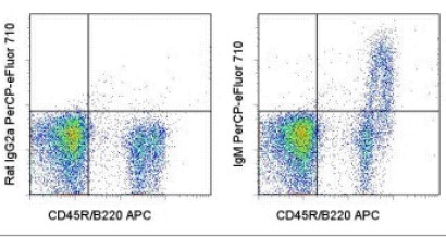 Description: The II/41 monoclonal antibody reacts with the μ heavy chain of mouse IgM. It does not react with other classes of mouse immunoglobulin including IgD, IgG or IgA. IgM is expressed intracellularly, during early stages of B lymphopoiesis, and then on the surface of more mature B cells in the bone marrow and peripheral B cells. Fluorochrome conjugated II/41 can be used as a detection secondary for mouse IgM.