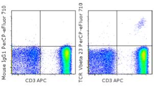 Description: This AF23 monoclonal antibody recognizes the human T cell receptor (TCR) Vβ 23 allele. Composed of an α and β chain, TCR specificity is typically determined by Vα, Jα, Vβ, Dβ, and Jβ gene rearrangement. Vβ expression in humans has been examined in studies on the effects of superantigens, inflammation, autoimmune disease, and HIV infection. More recently, assessment of TCR Vβ expression has been used to phenotype T cell clonality in CD3+/TCRαβ+ large granular lymphocyte leukemias. A member of the Ig superfamily, this receptor is expressed on a subset of peripheral blood T cells.