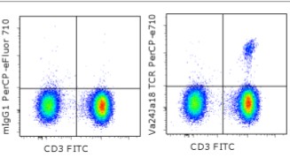 Description: The 6B11 monoclonal antibody reacts with an epitope of the CDR3 formed by the germ-line configuration of the V alpha 24 and J alpha 18 of the TCR alpha locus, which results in the expression of an invariant T-cell receptor (TCR) expressed by invariant NK T cells (iNKT). This TCR is homologous to the murine V alpha 14 J alpha 18. This TCR alpha chain pairs with a restricted set of rearranged TCR beta chains, with V beta 11 being the most prominent in humans. NK T cells are restricted by the CD1d molecule and are activated by a CD1d-presented glycolipid ligand, which results in the rapid production of IL-4, IL-13 and IFN gamma. Although iNKT cells have NK-like cytolytic activity, they are considered regulators of immune responses because they rapidly produce large amounts of both Th1 and Th2 cytokines in autoimmune disease, infectious disease, and cancer. The number of iNKT cells present in peripheral blood of normal humans shows considerable variability ranging from 0.01-1% of total peripheral T cells.