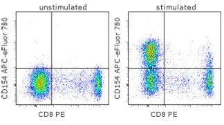 Description: The 24-31 monoclonal antibody reacts with human CD154, a 39 kDa transmembrane glycoprotein also known as gp39 and CD40 ligand (CD40L). CD154 is a member of the TNF superfamily and is expressed transiently by activated T cells. Through its binding to CD40 on antigen presenting cells including B cells, monocytes/macrophages and dendritic cells, CD154 serves a crucial function in T-APC cognate interaction. CD154 interaction with CD40 transduces signals for T-dependent B-cell activation and induces B cell cycle entry. 24-31 cross-reacts with the Cynomolgus monkey CD154.