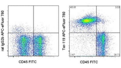 Description: The TER-119 monoclonal antibody reacts with mouse erythroid cells from early proerythroblast to mature erythrocyte stages. The TER-119 antigen is present in yolk sac, fetal and newborn liver, but is not expressed by cells carrying BFU-E and CFU-E activities. Several erythroleukemia cell lines tested so far are negative for expression of TER-119 antigen even after dimethylsulfoxide stimulation. Biochemical and molecular analysis of the TER-119 antigen indicate that this molecule is associated with the surface glycophorin A, but is not a typical glycophorin.