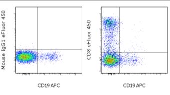 Description: The SK1 monoclonal antibody reacts with the human CD8a molecule, an approximately 32-34 kDa cell surface receptor expressed either as a heterodimer with the CD8 beta chain (CD8 alpha/beta) or as a homodimer (CD8 alpha/alpha). A majority of thymocytes and a subpopulation of mature T cells and NK cells express CD8a. CD8 binds to MHC class I and through its association with protein tyrosine kinase p56lck plays a role in T-cell development and activation of mature T cells.