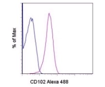 Description: The monoclonal antibody 3C4 (mIC2/4) recognizes mouse CD102, also known as intercellular adhesion molecule-2 (ICAM-2). CD102, a member of the Immunoglobulin superfamily of receptors with 2 extracellular Ig domains, binds LFA (CD11a/CD18) and Mac-1 (CD11b/CD18), thereby mediating cellular interactions to lymphocytes. CD102 plays a role in NK cytotoxicity and migration, and lymphocyte recirculation. Expression of CD102 is found on most lymphocytes, monocytes and platelets.