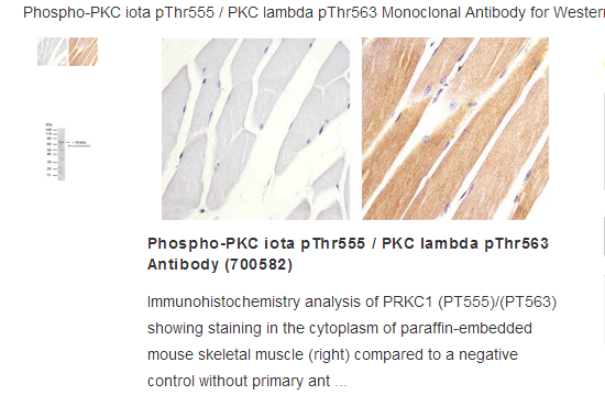 PKC iota/PKC lambda, is a 76 kDa member of the atypical group of the PKC family of serine/threonine kinases that are involved in a wide range of physiological processes that include cell growth and differentiation, gene expression and hormone secretion. Recently PKC iota has been described as an oncogene and has been implicated in various cancers. PKC iota has also been linked to heat shock response and as an indirect co-regulator of HSF1 activity. Protein kinase C iota/lambda phosphorylates Glyceraldehyde-3-phosphate dehydrogenase thus playing an important role in microtubule dynamics during early secretory pathway.