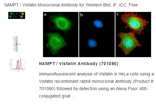 Immunogen Recombinant protein corresponding to amino acids 1–110 of human visfatin
