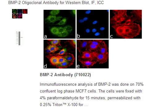 The protein BMP2 also known as Bone morphogenetic protein-2, belong to the transforming growth factor beta superfamily. The protein plays an important role in bone and cartilage formation. BMP2 signaling also is important for epithelo-mesenchymal interactions, apoptosis and dorso-ventral axis formation.